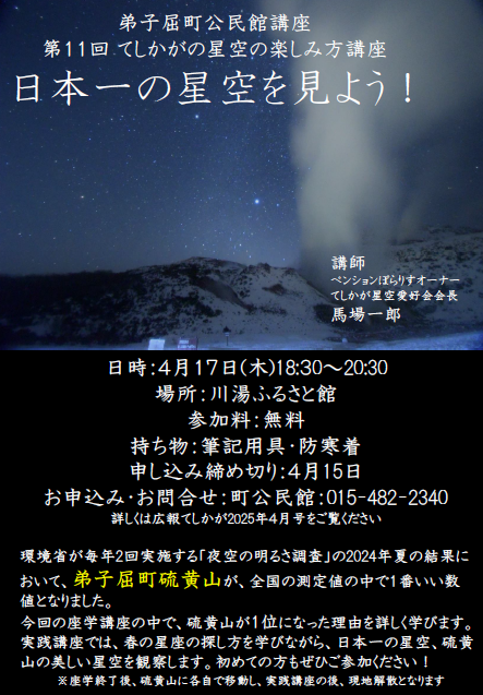 弟子屈町は摩周湖や硫黄山で見る星空が驚くほど綺麗で、硫黄山は日本一の数値を記録したこともあります★
