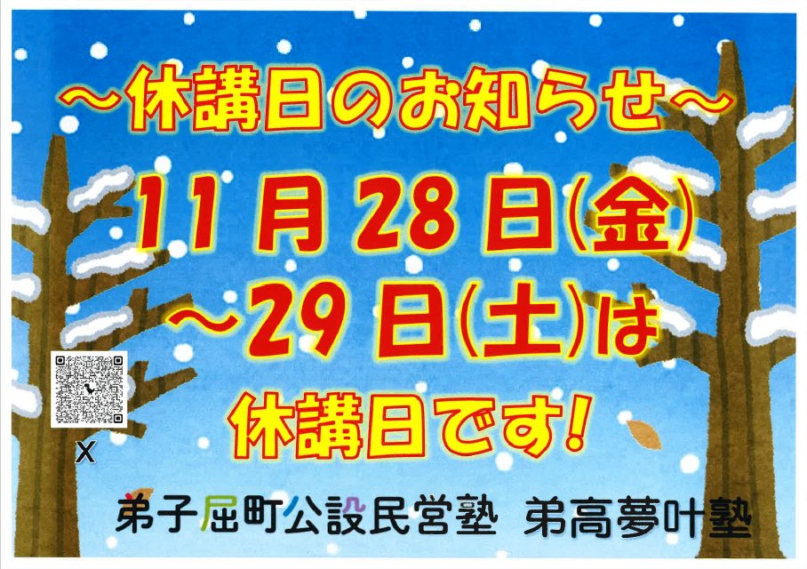 11月28日(金)、29日(土)休講日のお知らせ